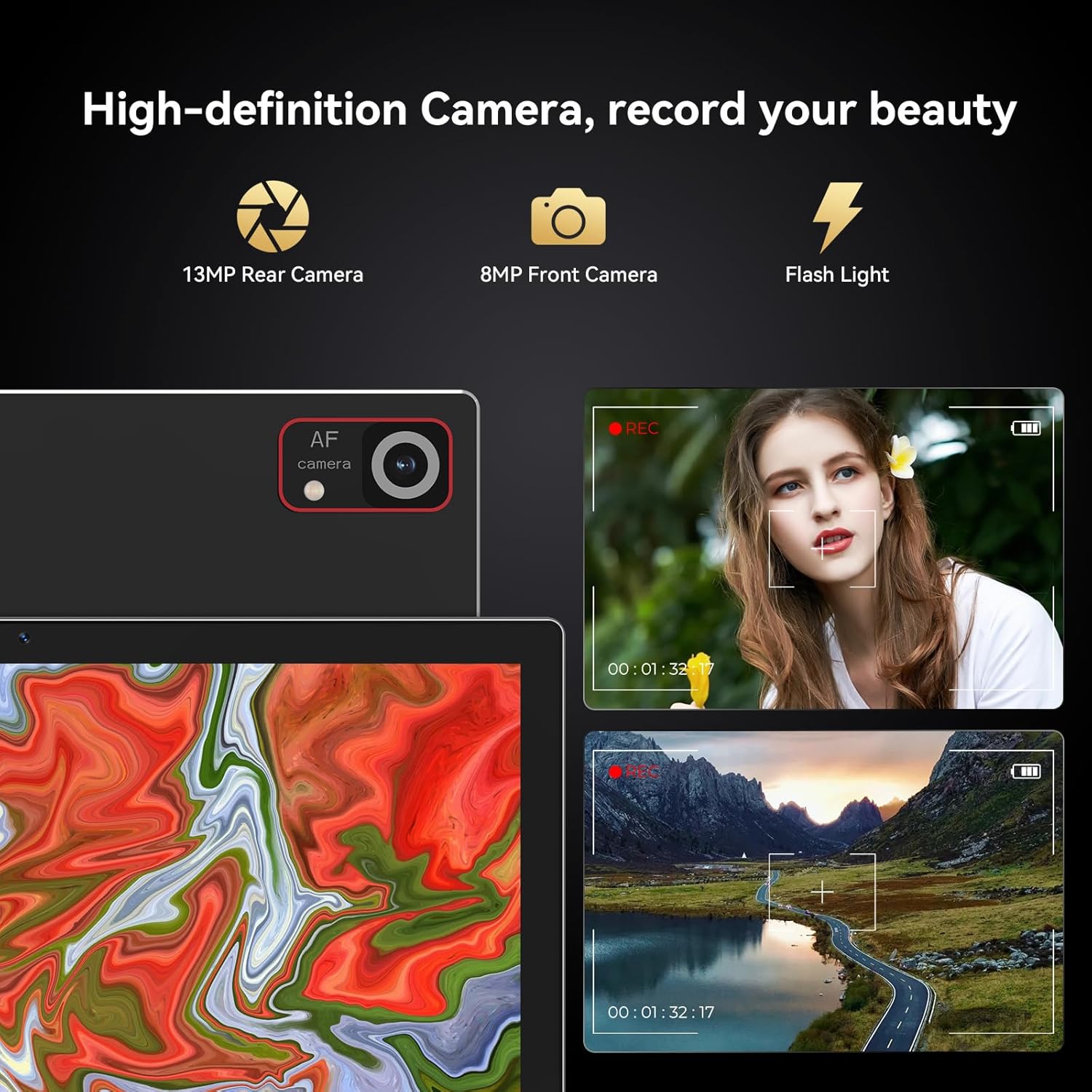 【10.1 IPS 1280*800 Screen】This android tablet with a 10.1 inch display with a resolution of 1280*800, a golden display ratio of 16:10, and a 178 degree IPS wide viewing angle. 10 inch tablet is perfect for watching videos, browsing websites and comfortable nighttime reading.