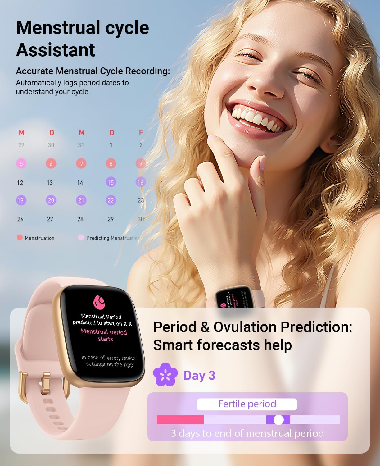 🔋【Up to 350mAh Battery — Charge Once, Lasts a Week】Battery upgraded again! Powered by a 350mAh battery, this smartwatch for women fully charges in just 2 hours and lasts up to 7 days on a single charge. So charge less, do more.