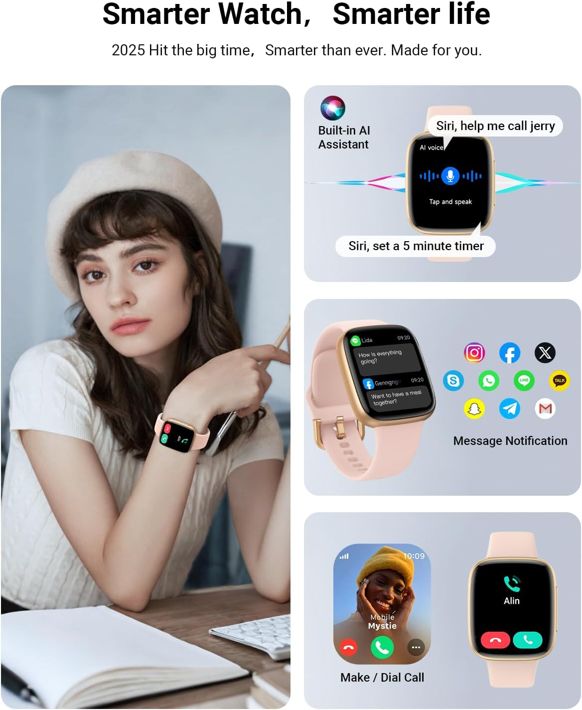 🏆【Smarter Watch — Intelligence on Your Wrist.】Built-in AI assistant, GPS & bluetooth 5.3. You can not only receive message notifications and answer calls, but also connect your phone to set alarms and play music via the AI assistant. Control it all on your wrist with your smartwatch — convenience like never before. (Message reply is not supported)