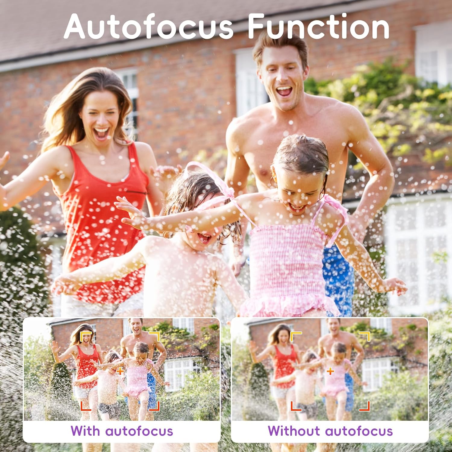 【Autofocus, HD Camera】 This compact camera has HD image resolution that can capture every moment with clear details. The underwater camera has an autofocus function. You can focus by half-pressing the shutter. The focus frame on the screen turns green, and then press the shutter fully to take beautiful photos. Even beginners can do it easily.