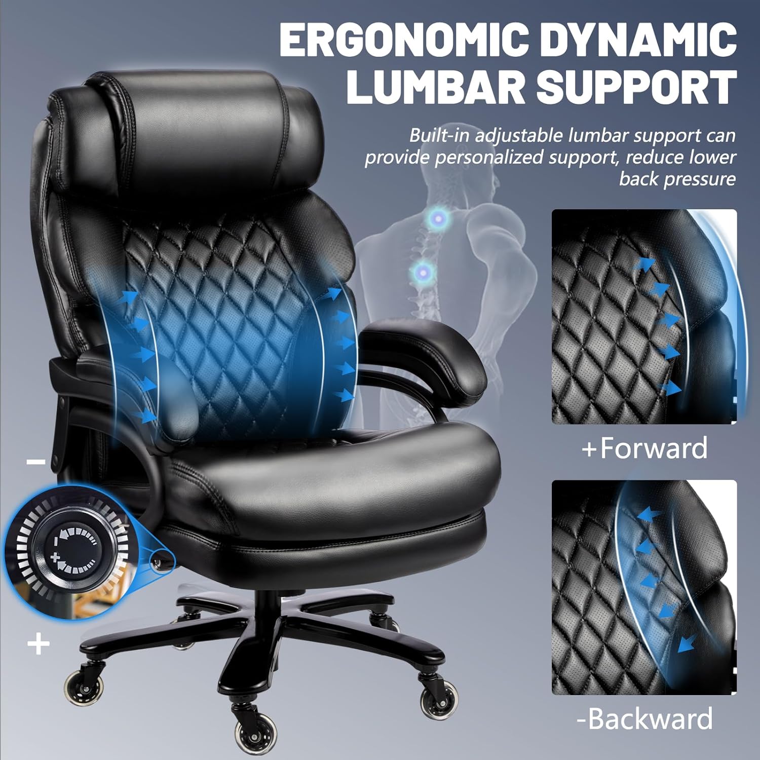 800LBS Big and Tall Office Chair for Heavy People, Heavy Duty Executive Chair with High Back, Extra Wide Seat and Adjustable Lumbar, Large Computer Desk Chair Comfortable for Home Office (Black)