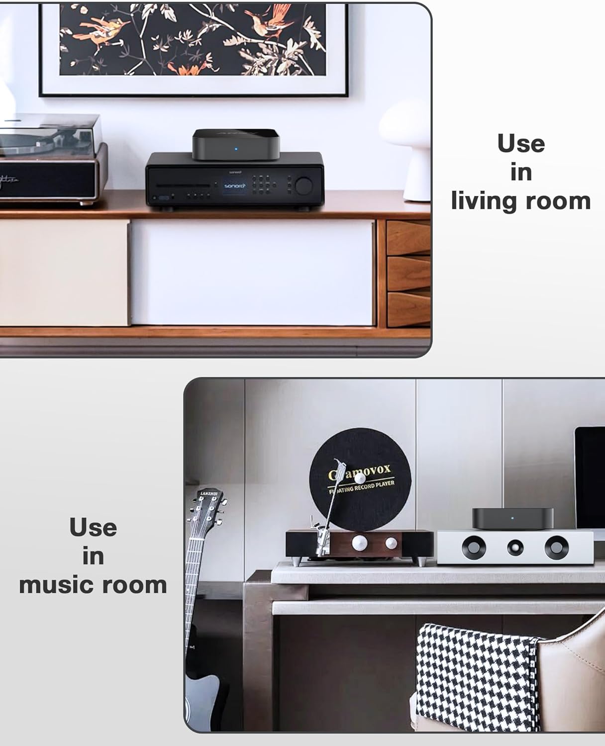 Hi Res Audio – Stream high-resolution 24-bit/384 kHz music wirelessly through analog outputs. Enjoy gapless playback and bit-perfect output. Please note that not all music services offer 24-bit/384 kHz content, and this Ne-3 new version audio streamer only support 24-bit/384 kHz through line out.