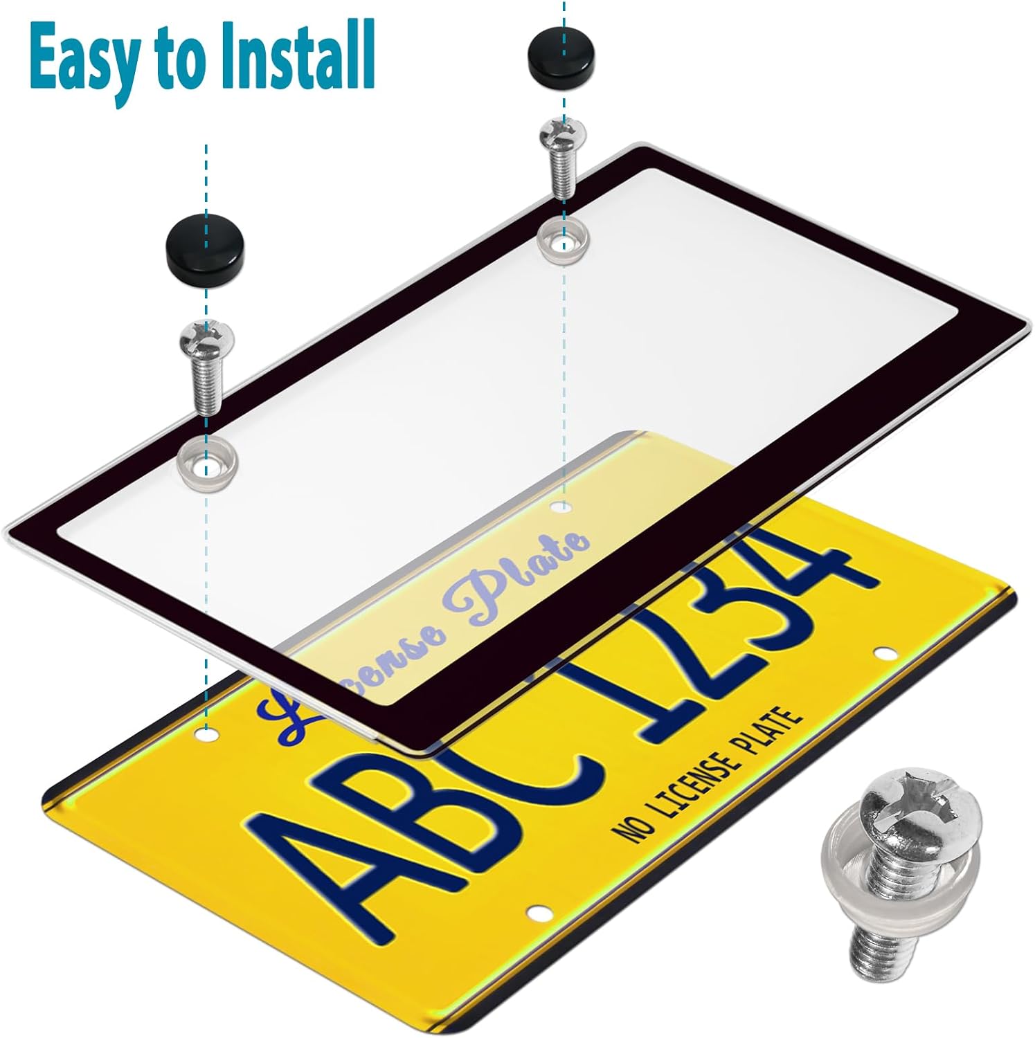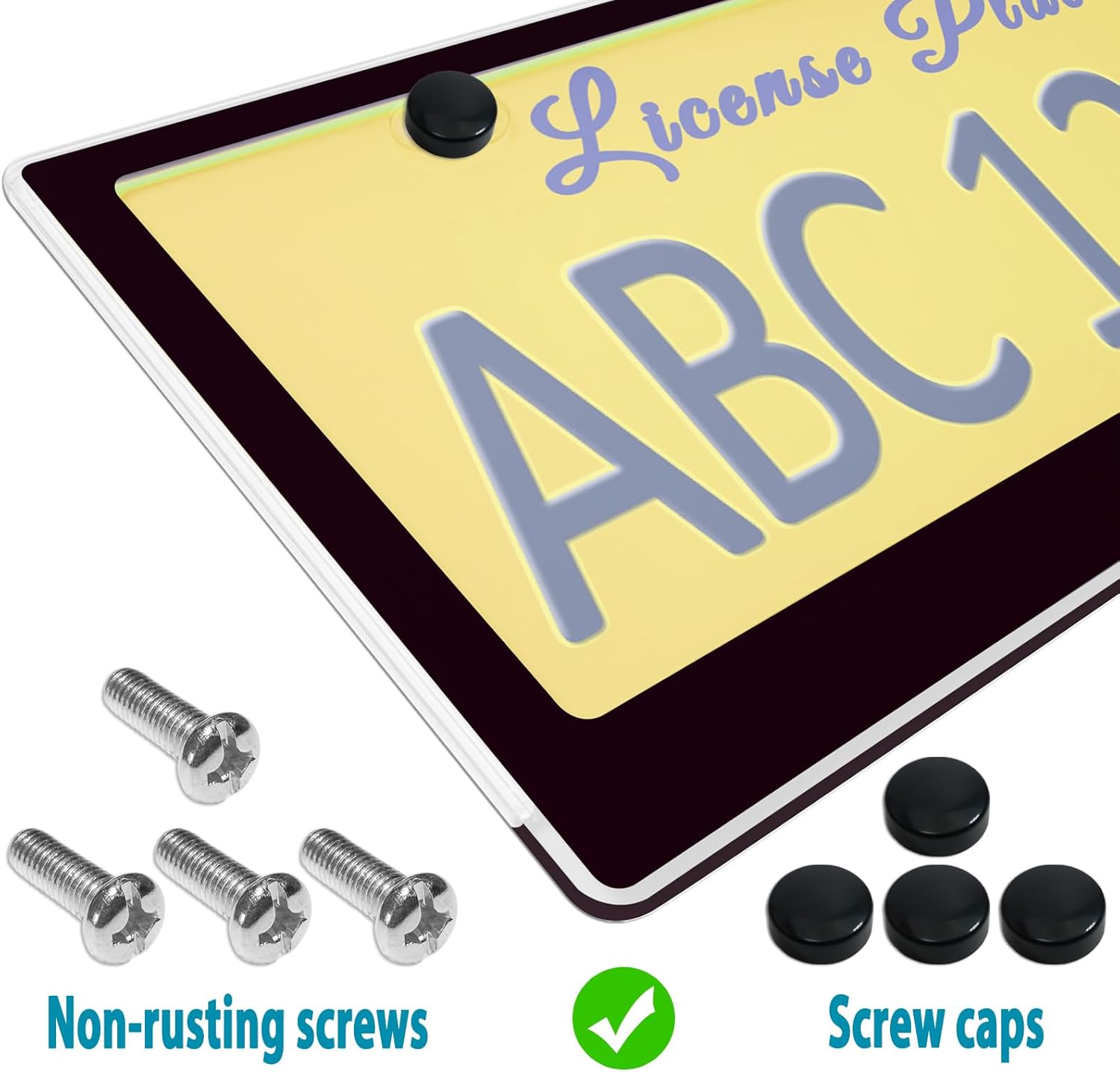 Easy To Install- The plate kit includes license plate screws and screw caps. M6 (1/4 inch) screws are suitable for fastening the plates of most models. The black screw cap covers the screw head, making the plate clean and tidy. The black license plate rattle proof pad is pasted on the back of the metal license plate to avoid noise and friction with the car paint