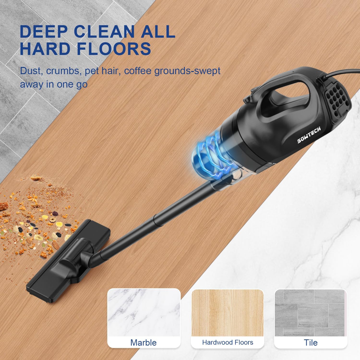 CORDED VACUUM CLEANERS FOR HOME: Extra-long wired power for permanent clean power without replacing batteries, great for home cleaning. Our vacuum come with Corded Stick Vacuum, Floor Brush, Crevice Tool, Square Brush