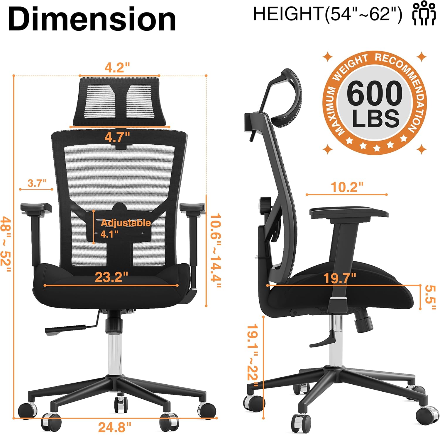 Ergonomic Mesh Office Chair, 600LBS Computer Desk Chair with Adjustable Lumbar Support and Armrest, Office Desk Chairs with Wide Thick Seat Cushion, Big and Tall Office Chair for Heavy People