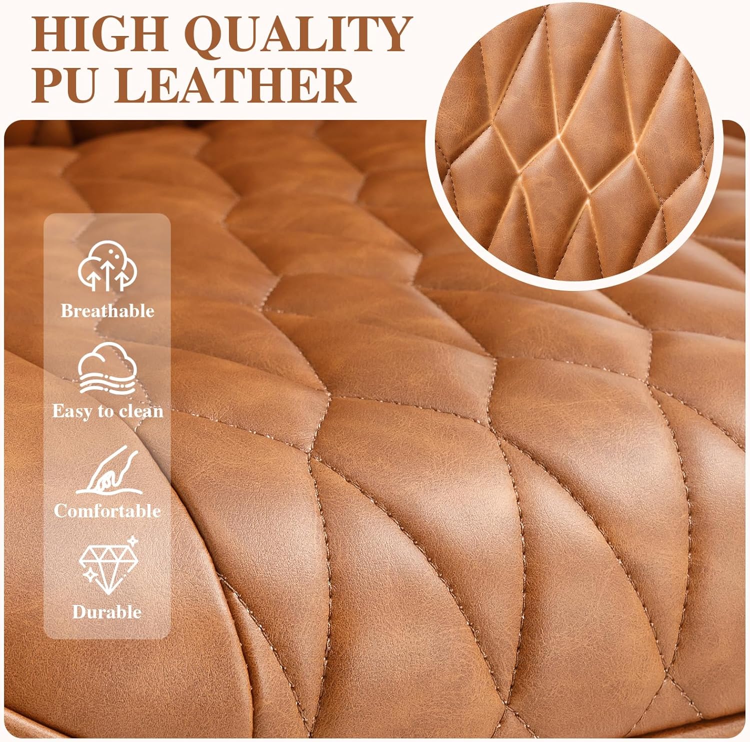 Timeless Design Meets Modern Functionality: This retro-inspired computer chair blends vintage charm with contemporary convenience. Upholstered in water-resistant PU leather, it wipes clean effortlessly with a damp cloth—ideal for busy lifestyles. The signature diamond-quilted stitching adds a touch of modern sophistication, while its versatile design effortlessly enhances home office, complements bedroom aesthetics, or adds character to entryways. More than just seating, this mid- back desk chair is a stylish statement piece designed to elevate any space
