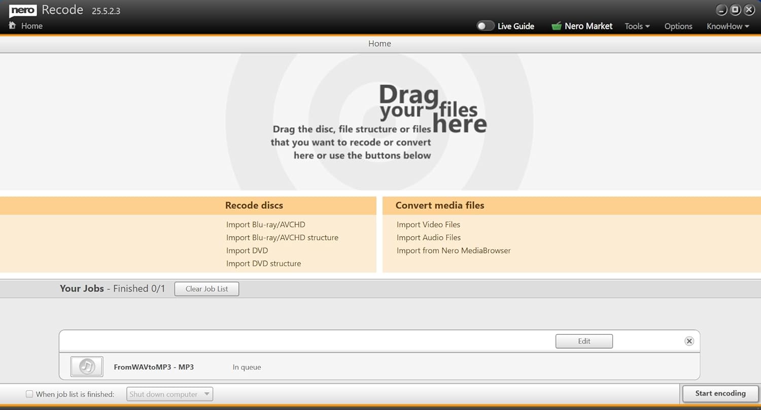 Click on “Start encoding” to start the conversion process. Nero Recode automatically converts your files into the desired format.