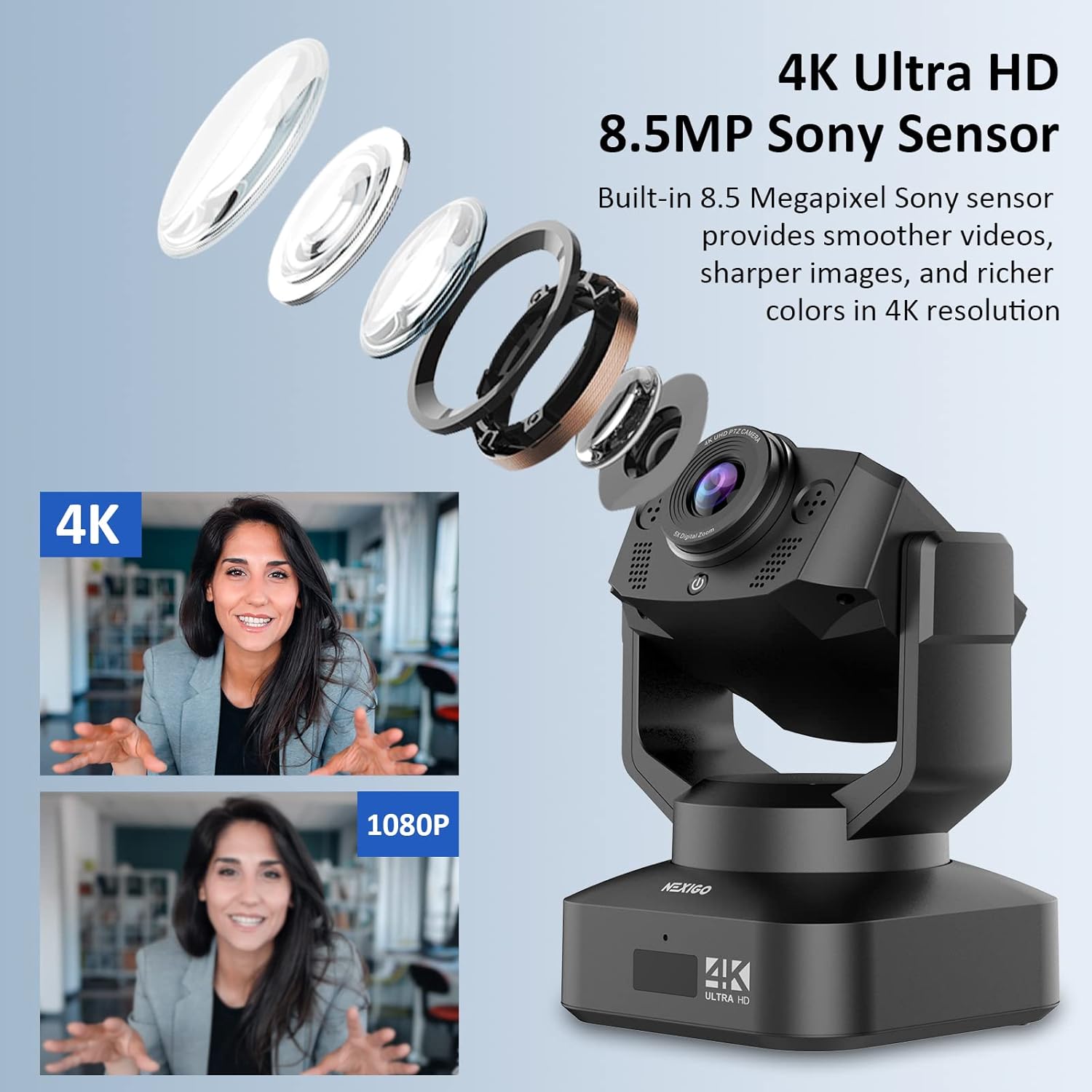 8 reviews for NexiGo N990 4K PTZ Zoomable Webcam, Video Conference Camera System with 5X Digital Zoom, Sony Starvis Sensor, Position Preset, Dual Stereo Mics, Audio Jacks for External Mics (Renewed)