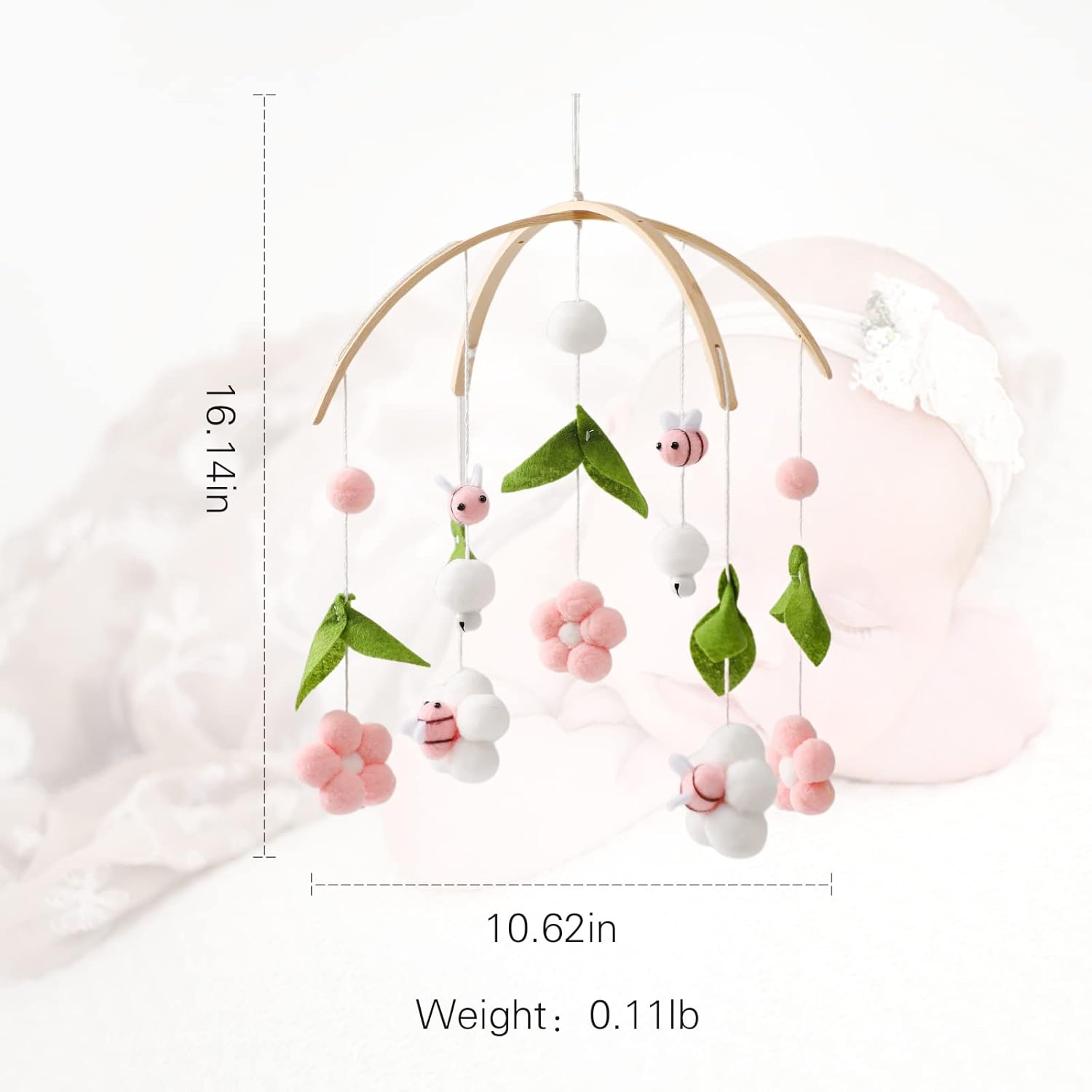 OESSUF Baby Mobile for Crib, Crib Nursery Mobile for Boys Girls, Boho Bee Flower Nursery Decor Soothe Toy Baby Shower Set for Infant Bedroom Hanging Decoration Toy, Pink