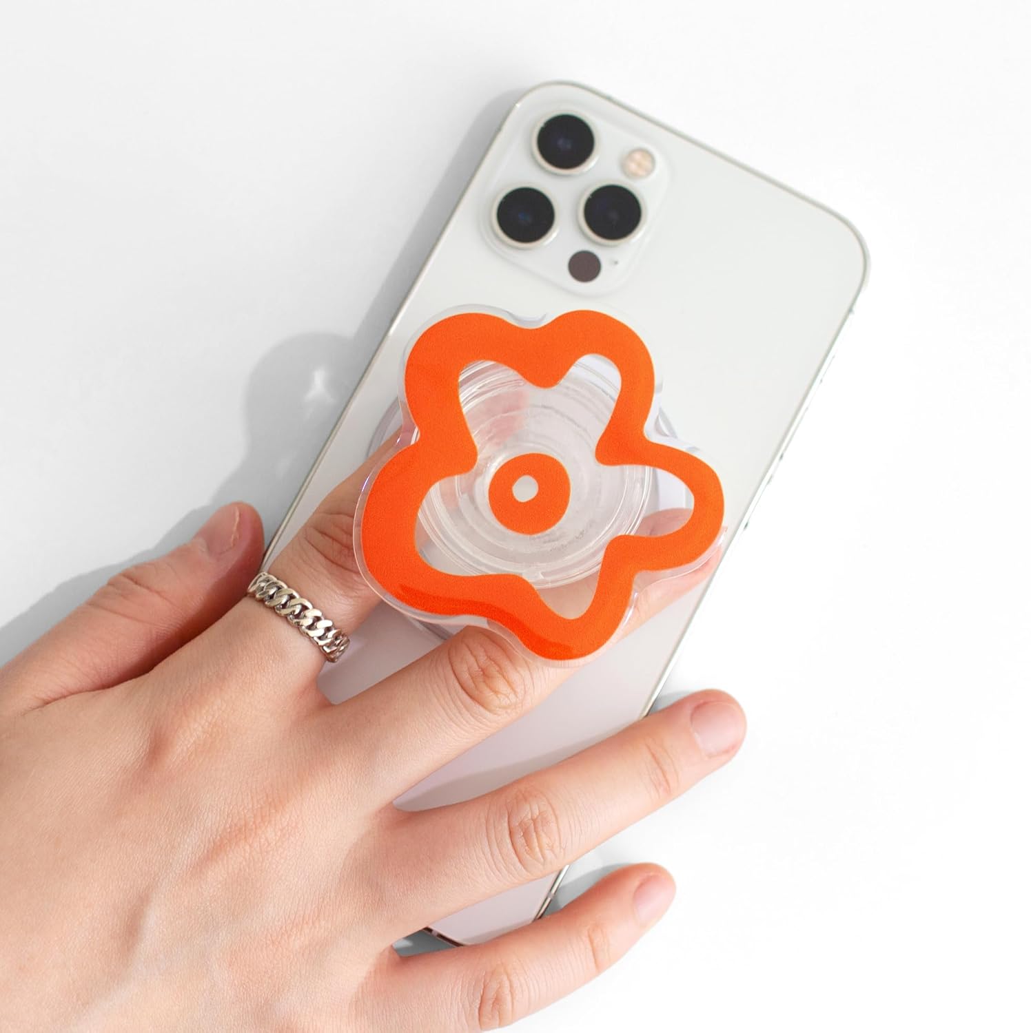 8 reviews for OnTheGrip Cute Transparent Daisy Flower Shape Design Mobile Phone Grip Compatible with Magsafe Multi Functional Collapsible Stand Holder for Smartphone Tablet Cell Phone Accessory (Coral)