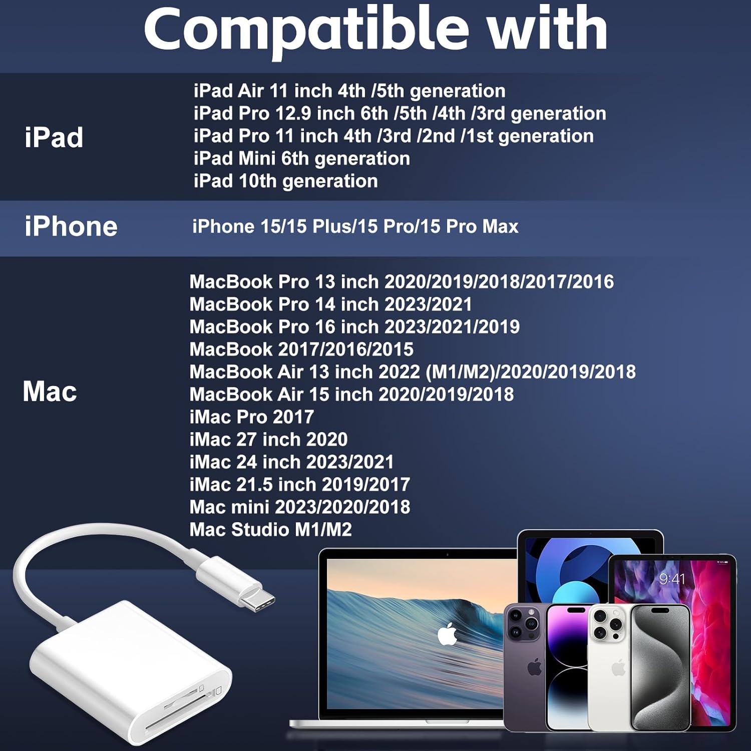 【Cross-Platform Compatibility】Works with iPadOS 17+ Files app and macOS Ventura. SD card reader for usb c compatibility with iPhone 16 Pro Max, iPad Air 6th Gen, Samsung Galaxy S24 Ultra, and Windows laptops. Supports exFAT/FAT32 formats
