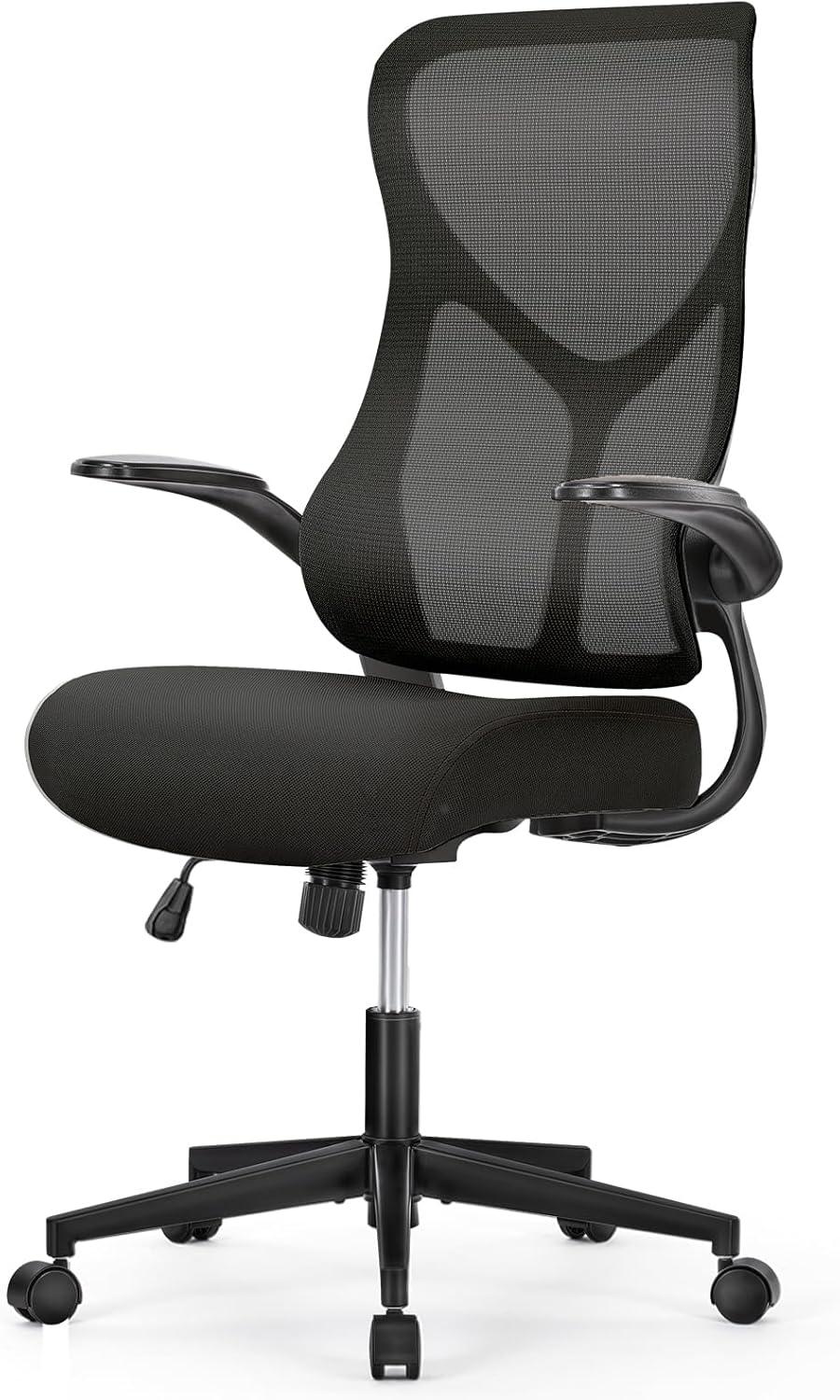 Sweetcrispy Ergonomic Office Desk Computer Chair, Comfy High Back Swivel Rolling Home Mesh Gaming Chairs with Wheels, Lumbar Support, Flip-up Arms,for Bedroom, Study, Work, Classic Black