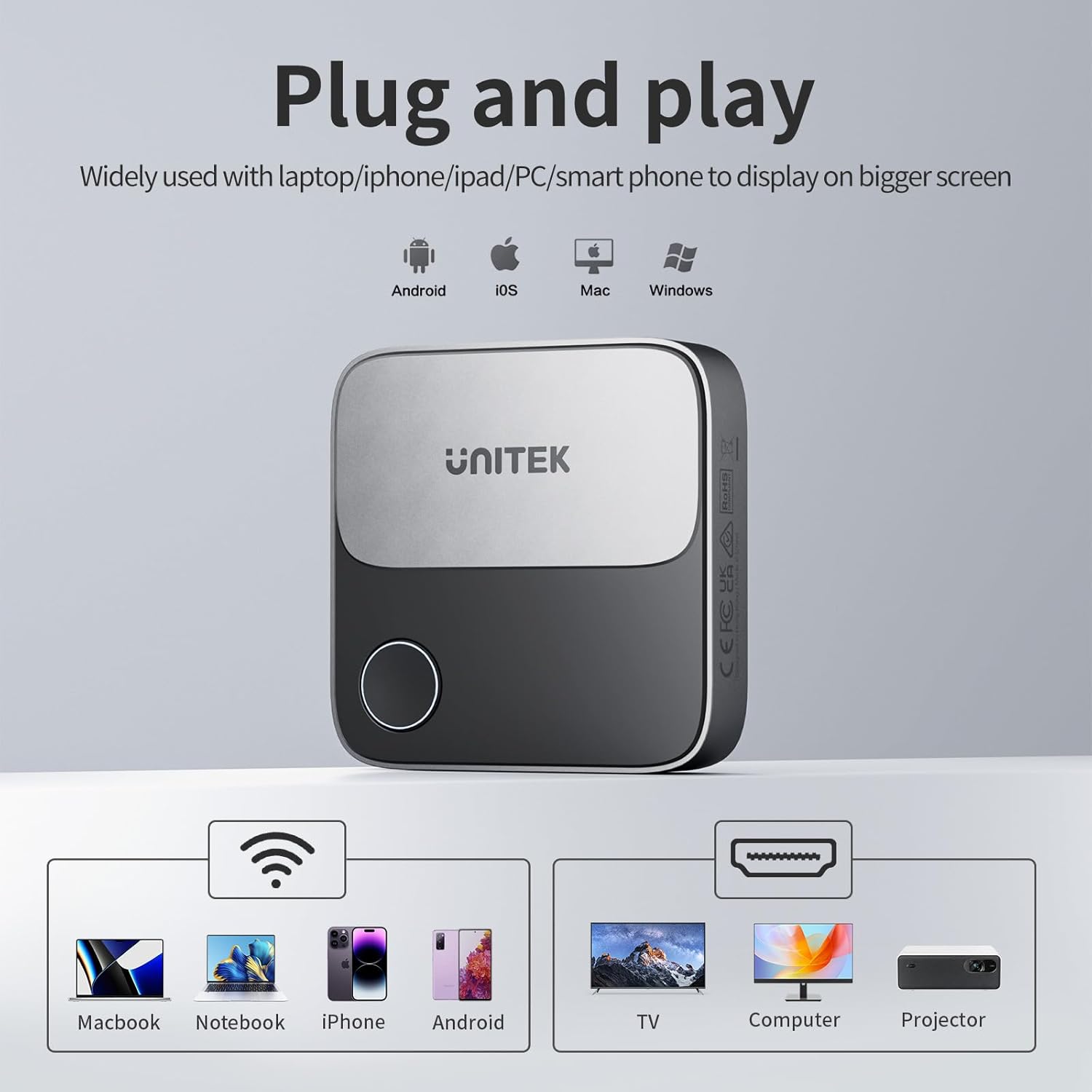 13 reviews for Unitek Wireless Hdmi Display Dongle Adapter – Screen Mirroring Receiver 2.4G/5G 4K TV Casting Device Screen Mirroring Adapter/Extender for Streaming Video to Monitor from Mac iOS Android Windows