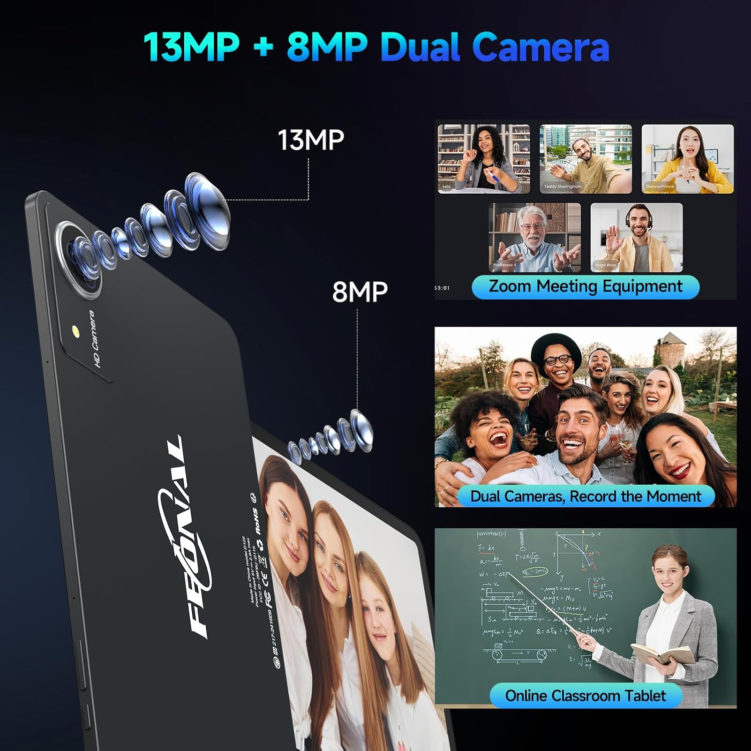 【Cinematic Quad Speakers & 13MP Camera Content Creation Tablet】Capture TikTok videos with Dolby-optimized surround sound. The 13MP+8MP Dual Camera 2025 latest tablet can perfectly support clear video calls and capture life’s beautiful moments with ease.