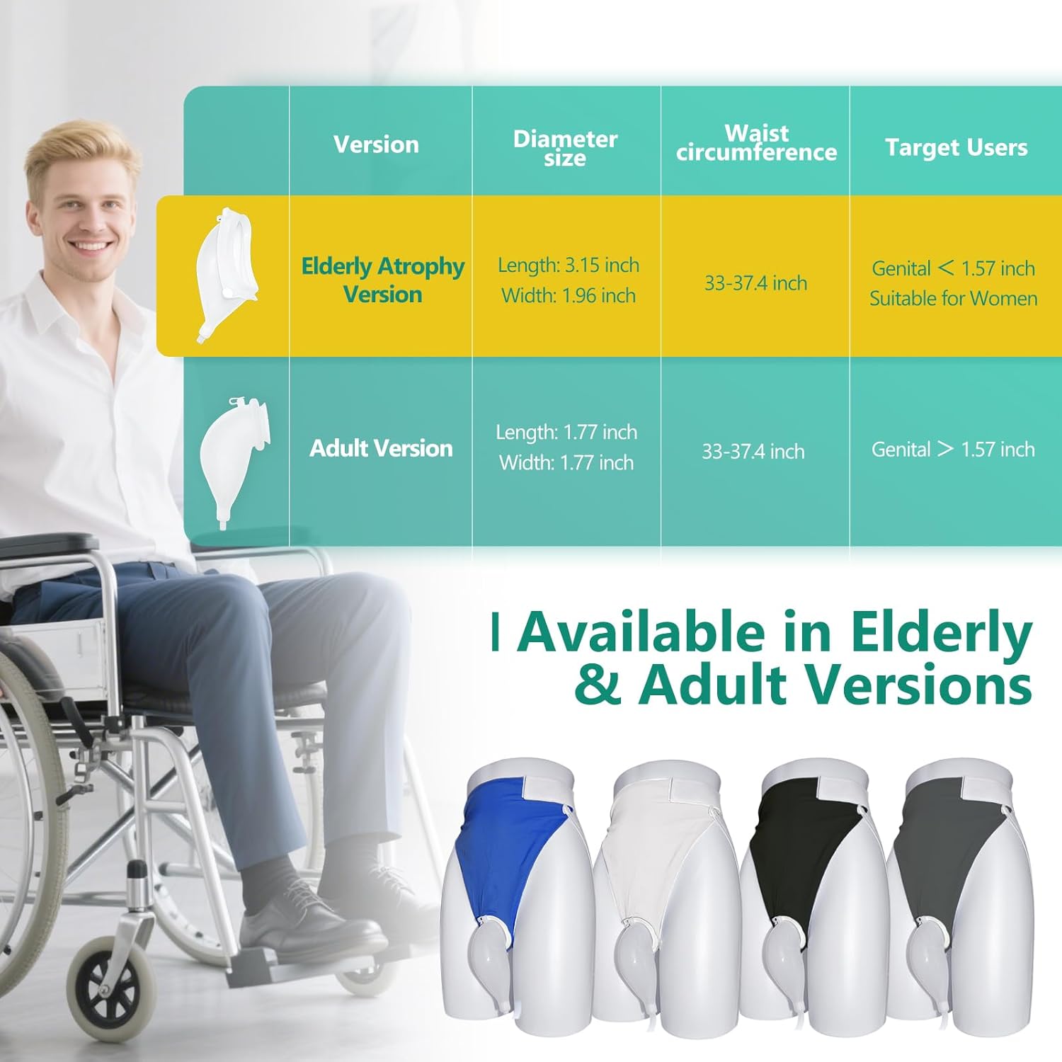 【Ideal for Individuals with Urinary Difficulty】This wearable urine collector set is specially designed for individuals with difficulty controlling urine flow, offering an ideal solution for those who need assistance with urine collection while bedridden or immobile.