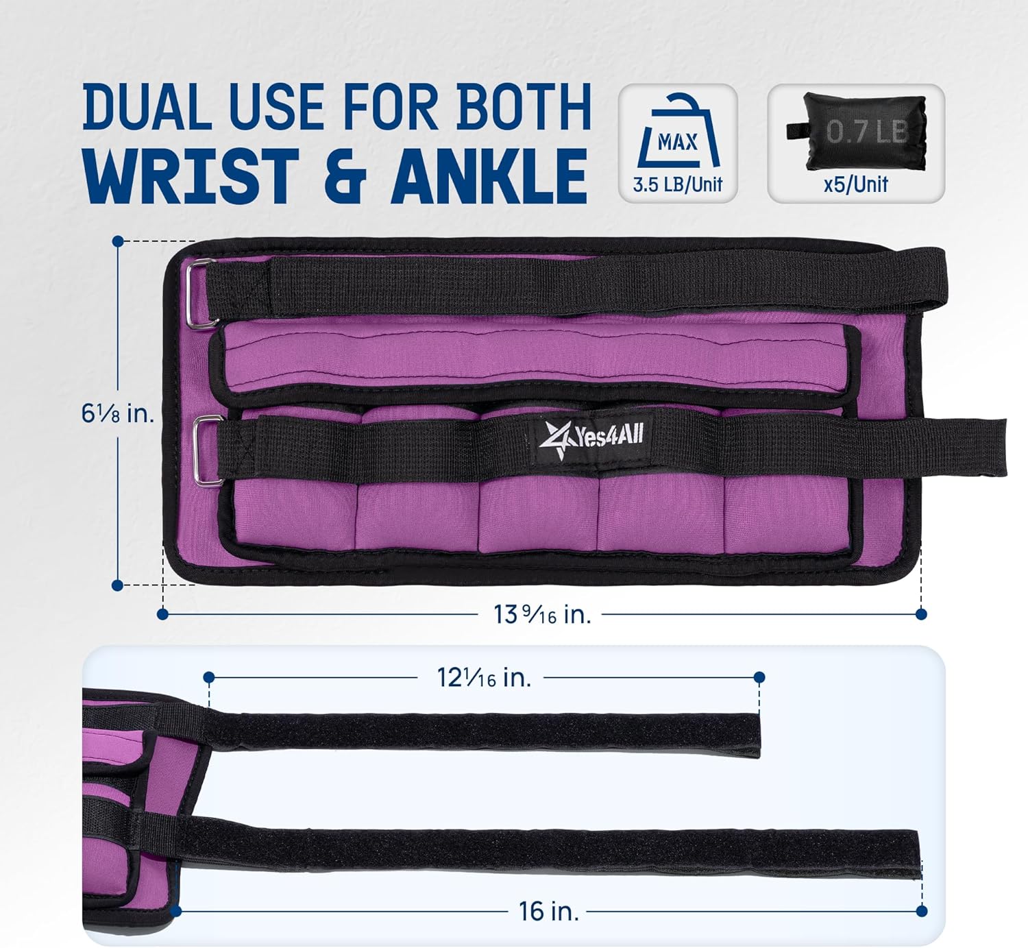 Yes4All Adjustable Wrist & Ankle Weights 3.5/5 LB Pair, Leg Weights for Women & Men, Weighted Arm Bands with Removable Sandbags for Fitness, Pilates, Walking, Strength Training – Versatile Colors
