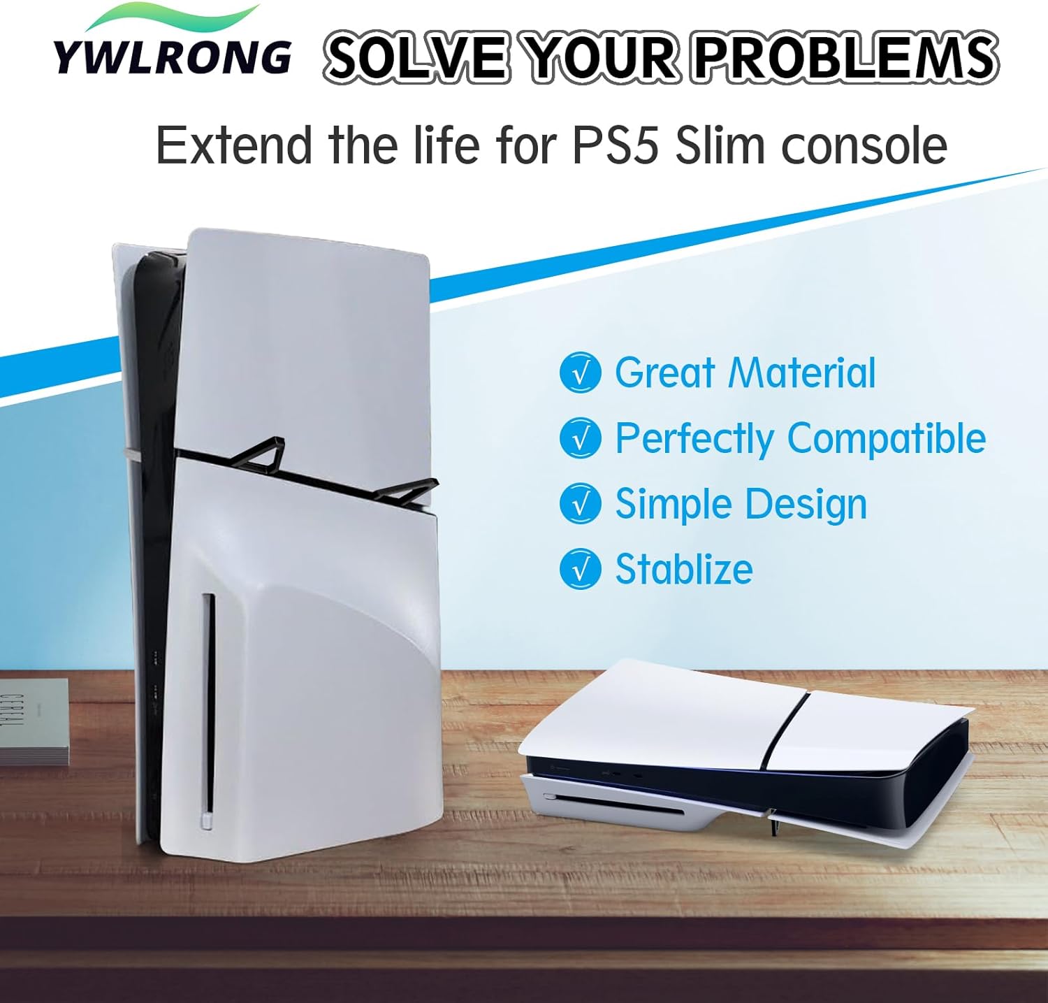 Durable and Stable: For PS5 Slim stand is made of lightweight and durable ABS material, ABS material is durable than PC plastic and provides enough supporting. It also safety to hold console on the stand for PS5 Slim and prevent scratches.