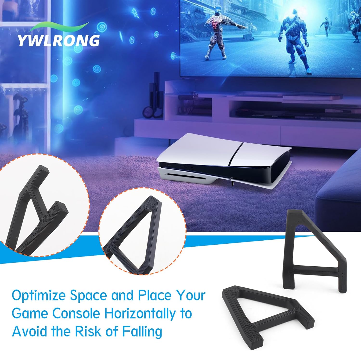 Wide Application: Stand for PS5 Slim is an essential accessories for PS5 Slim to prevent the console from pets or kids’ tripping. For PS5 Slim flat stand is suitable for placement on the TV table, shelves, or any flat surface. You can place the console with horizontal stand anywhere you want.