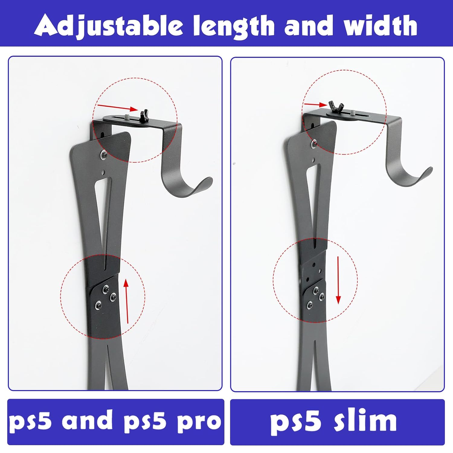 ZHSX Wall Mount for Ps5 Models,Ps5 Shelf Playstation Wall Mount Compatible with Ps5、Ps5 Pro and Ps5 Slim Disc Adjustable Length and Width Holds Two Controllers